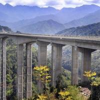红河大桥是云南元江至磨黑高速公路上规模最大的一座桥梁,位于云南省元江县,跨越红河,采用58+182+265+194+70米预应力混凝土连续刚构,桥梁总宽22.5米,该桥主墩高度达122米,建成时为世界第一高桥。