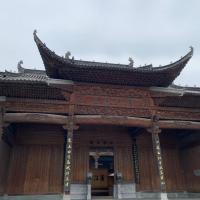 进入江湾景区后左首一座现代的大祠堂,木质建筑。老建筑不多,大都是现代的,因是前领导人的祖籍,才成为5A景区。用时一个多小时,沿指示的路线走了一遍。出门取车,导航设定最近的加油站,显示只有500米,但到达目的地后,发现是一片停车区。只好选择下