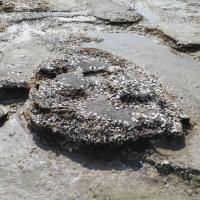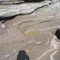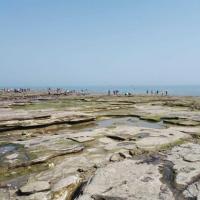 涠洲岛五彩滩 ,原名芝麻滩,是因沙滩上有许多像芝麻一样的黑色的小石粒而出名。退潮后的芝麻滩格外的漂亮,巨大的火山岩石一层一层的,在阳光的照射下特别的壮面。大片大片的火山熔岩裸露出来,特别的宽阔。许多地方虽然海水退了,但还是留下了大片大片的一洼一洼的水,在蓝天的映射下,一洼一洼的水在视线中也变成了蓝色,和裸露的岩石一起,很是迷人。