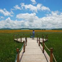 夏天去了五花草甸真的不错,我们去那天是刚刚下过雨,雨后的蓝天非常美丽,而且还有变化多端的云朵,真是饱了眼福了。我们一家三口走在木栈道上,沐浴在阳光之下,美啊!