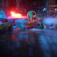 住在赤水酒店,经酒店前台推荐,到四洞沟仙境观看灯光演出秀。刚看完第一幕,天开始下雨,还好,主办方在各个点都准备了免费雨衣。后来由于雨太大,因安全问题,演员撤离,游客继续看灯光秀至终点,工作人员热情服务,直至最后一名游客撤出,他们还耐心地解释