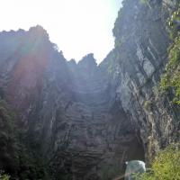 武隆天坑地缝国家地质公园位于重庆市武隆县境内,长江支流乌江下游,属于典型的喀斯特地貌,宏达的天生桥群、面积巨大的天坑、险峻幽深的地缝。天坑景区拥有世界上最大的天生桥群和世界第二大的天坑群。这里真正为人所知,是在它成为电影《满城尽带黄金甲》外景地之后。同时这里也是《变形金刚4》的外景地。游览龙水峡地缝时,先乘坐电梯下到半山,再步行到地缝的谷底,沿岩壁栈道顺暗河前行,沿途处处是瀑布、溪流和原始植被。