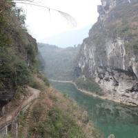 神龟峡是阿蓬江峡谷景观中最为优越的河段,从黔江两河镇至酉阳大河口,全长38.9公里。峡口紧邻国道319线,距黔江城44公里。一弯未尽,一弯又起,其弯道之多(全程经过27个弯,28个门),实属峡谷罕见,真是:“船到崖前疑无路,掉转船头又一弯”