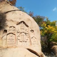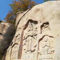 十一先到北镇双塔、阜新海棠山、朝阳化石谷、最后参观锦州博物馆,一路上高速畅通,游人不多,食宿价格适宜,真心推荐!海棠山被誉为“佛教艺术名山",山上的摩崖石刻随处可见、轮廓清晰,在婆娑树影的映衬下尽显密宗特色;山顶远眺层林尽