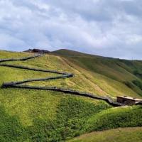 大韭菜坪有两个门:东门和西门,东门更大,设备更齐全,可以坐缆车;西门小,人少,坐观光车或小火车上山,价格较缆车便宜;两边的地势不一样,景致会不同,如果天气好,坐缆车看风景会更壮观。韭菜确实谢了很多,但看到这样的景色也不觉得遗憾。如果有机会还