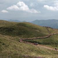 大韭菜坪风景不错,有点冷,需要穿户外的衣服,花也很漂亮,云雾缭绕,感觉比北方的雾霾好多了,不错,有机会还会来,现在北方的雾霾渐渐起来了,也不知道以后怎么办,今年冬天也不知道怎么过。