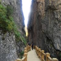 则岔石林还是不错的。破有石林的感觉。和云南石林的区别是,云南是在平地上的石林,这里是在山上的石林。不过还挺好看的。看过这里之后隔了一个月去云南也没觉得石林如何。而且这里是要沿着栈道走些路的。不是很辛苦,风光也不错。栈道在马路左边,右边的山坡
