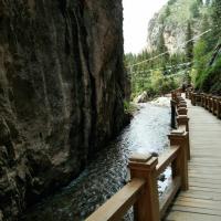 景色很美,则岔石林河水草原树林共同构成一幅幅画卷,和其他景区相比开发程度较低有原始风味唯一不足的是从碌曲县城到景区大门再到核心区路实在太烂了五十公里路走了两个小时沿途在修路据说到明年底县城到大门的路可能会修好经过一线天有一处休息的地方有卖方