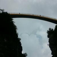 天燕是个非常大的景区,我们感觉最吸引人的就是彩虹挢和燕子洞了。两座大山顶部横亘出一座人造七彩大桥,确实想象丰富。有风时,站在上面还能感到阵阵震动,让我略有心惊!而燕子洞深藏大山,硕大的洞口让人目瞪口呆,洞内还有暗河,但林区为了保护燕子,洞里