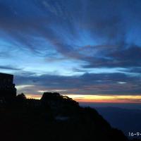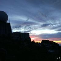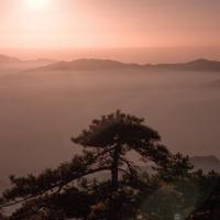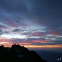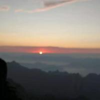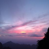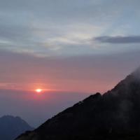 光明顶看日落的人很多,一些绝佳的观景点已经被早些到的游客占领,黄山的日落大约在下午7:00左右。根据前人的经验,我们3:30起床,外面还是黑黢黢的,等待日出的这段时间,我们都有点小兴奋,可以抬头看看美丽的星空