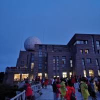 光明顶上面有一个圆顶的天文台。也有一个长长的观景台。可以从这里瞭望群山。据说能看到飞来石,但是我没看到。光明顶上有不少酒店可以住在上面。