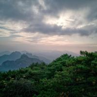 光明顶,人多,太吵,不过能看到天都莲花,日落很不错。景色迷人,不得不感叹大自然的鬼斧神工,下次有机会还要再来!光明顶上视野很好,可以清晰地看到黄山诸峰。就是人太多了,感觉乱哄哄的。