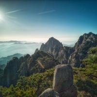 光明顶是黄山第二高峰,海拔1860米,因高旷开阔,日光照射久长而得名。登上光明顶观景特别棒,这里不仅是俯看四周壮丽群峰的最佳地点之一,还是看日出、日落、云海的好地方。在光明顶可观东海奇景、西海群峰,天都、莲花、玉屏、鳌鱼诸峰尽收眼底。