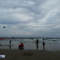 海陵岛这边天气晴朗的话,还是真的蛮不错,可以媲美三亚那边的海浪,但是在这里天气不好的时候就比较的普通,在这边的娱乐设施,现在是越来越好,楼盘也很多。