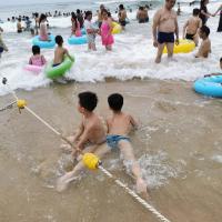 早上等着看海陵岛上的日出,欣赏着海景。哇,有两人一大早就去潜水了,真让人佩服。海浪冲刷着海岸,真的很美丽,很适合度假的地方,去了2天1夜,可以忘记很多烦恼,非常不错,推荐一下。