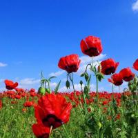 天山天池的红花每年5月份底开放,鲜红欲滴的天山红花开得火红浪漫!天山红花生长在天山缓坡草甸中的野生植物,是初夏一大靓丽景观,盛花季节,天山红花花开红红火火,形成红花的海洋。