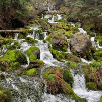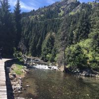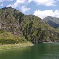 天山天池真的好美,远处峰峦层叠,天空蔚蓝明亮,池水一碧如洗,果然不负盛名,传闻这就是王母娘娘洗澡的瑶池仙境。西小天池是山上一条瀑布流成的小溪汇成的,远处有窄窄的小峡谷,池水碧绿如镜,凉风一吹,波光鳞鳞,如果此时有一叶扁舟从小峡谷里飘然驶来,
