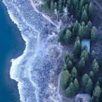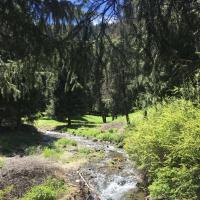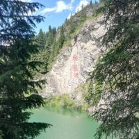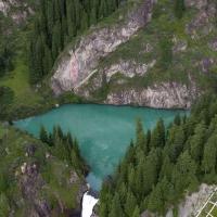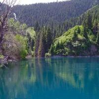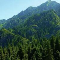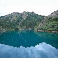 5月去天山天池游玩,图片是西小天池,西小天池在天池脚下两公里处的路旁,水面状如满月,池水清冽幽深。天山塔松环抱四周,池中有松树的倒影。