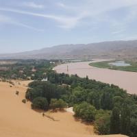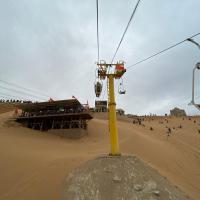 沙坡头和通湖草原一样同属腾格里沙漠。但是这里不仅有沙漠,绿洲,还有黄河,戈壁,四景合一,壮美!今天的天气不太好,阴沉沉的,但是温度很适合,很凉爽。这个沙漠与其他两个最大的不同在于,在这里可以看到人类改造自然的力量。从我国第一个沙漠研究站在这