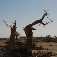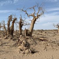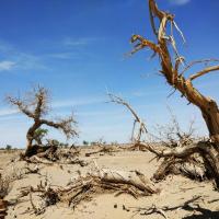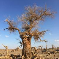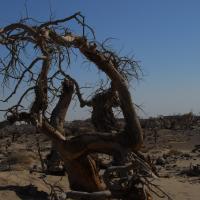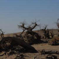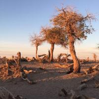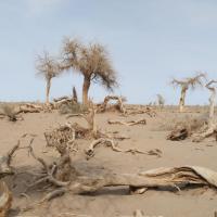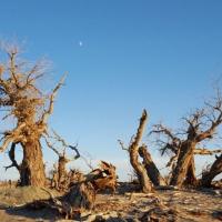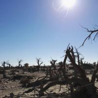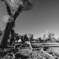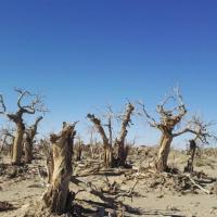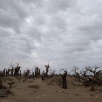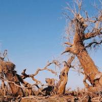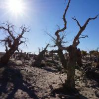 怪树林在额济纳旗达来呼布镇西南28公里处,所谓“怪树林”,是数百年前因自然灾害——极端的干旱而致成片的胡杨枯死,且干燥的环境让胡杨枯而不腐、挺立不倒,才使今人能观赏到形状各异的胡杨造型。