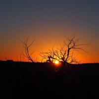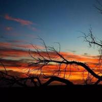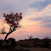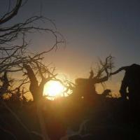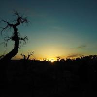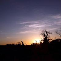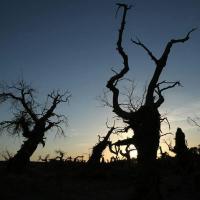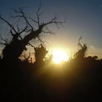位于内蒙古额济纳旗的怪树林,是胡杨树由于水源不足大面积枯死而形成的一大片胡杨树墓地,其枯木凄惨怪状,每一个树干都有难以名状的奇怪形态,在此处看日落非常的美。