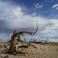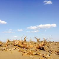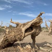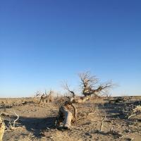 怪树林是摄影师的拍照天堂,也是倒地胡杨千年不朽的地方。由于河道的改变,让这里上千亩的胡杨林枯死,形成千姿百态的枯枝干,这些千年不倒的树干,在风中凌冽,形成各种各样的形状,有一种悲壮又震撼的感觉,随手一拍都是大片。