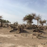 去年十月份去的怪树林由于水源不足,胡杨树木枯死,枯木惨状凄凉。生而千年不死,死而千年不倒,倒而千年不朽。