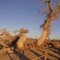 怪树林这不是一个有趣的景点,但景观绝对独特。这是因黑河上游用水无度,导致下游缺水,大片胡林树缺水死亡,陈尸遍野造就的独特景观。胡杨树或死而挺立不屈,或倒而不朽,枝干扭曲,似乎是对死亡的抗争,对生命的渴求。夕日西下,林内则狰狞诡异。这是一片生