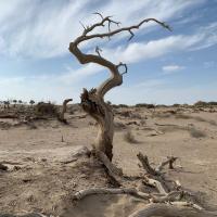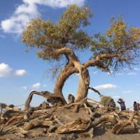 怪树林是一处难得一见的景致,悲壮的传说,孕育出这里的苍凉之美,风沙的力量,演绎出这里的死亡之美,只有到这里才能真正感受到胡杨的性格,为胡杨的死而不朽所震撼。