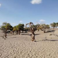 怪树林在额济纳旗达来呼布镇西南28公里处,怪树林实际上是大片胡杨林枯死而形成的。这里枯死的胡杨陈尸遍野,呈现出古老的原始风貌,提现了他们与恶劣自然环境顽强抗争的不屈精神。