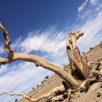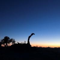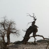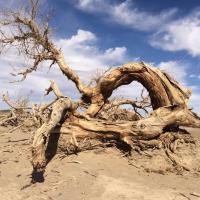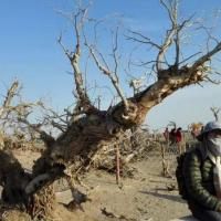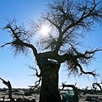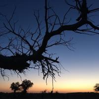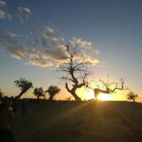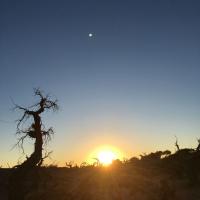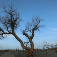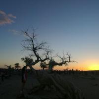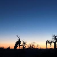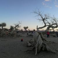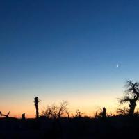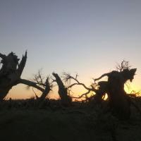 额济纳怪树林一定要日出和日落时分来。傍晚的怪树林萧瑟、沉默。在这里,哪怕是掉在地上的每一根纤细的枯干,都有着千年的历史。单独走进怪树林会毛骨悚然,那千奇百怪得死亡的状态会让你体会到死而不倒的精神。如果没有审美以及悟性,很难感受到这死亡的美。