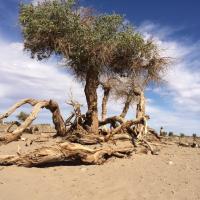 额济纳怪树林让人感叹大自然的神奇,在如此恶劣的生存环境还能生长出大树。曾经看过一篇文章,说沙漠里的胡杨树千年不死,死后千年不倒,倒后千年不腐。如今亲眼得见更感神奇。