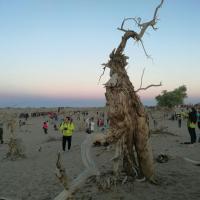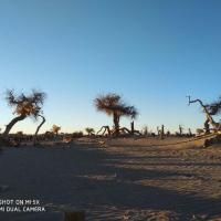 额济纳怪树林和黑城是一个景区。联票150。全是枯死的胡杨林树木,千姿百态,在夕阳之下有一种极为不同的美,决然,倔强,在一片沙漠中格外引人瞩目。
