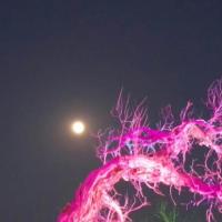额济纳怪树林景区有大片干枯的胡杨,是拍日落的好地方。晚上彩色射灯打在胡杨上五彩斑斓,像海底七彩的珊瑚。