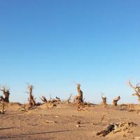 额济纳胡杨林一大片死去的胡杨遗址,造型么就跟石林一样,全靠“你猜?”死去的胡杨还是有点震撼的,这么多年依然伫立不倒。夕阳西下的时候还是挺美的。