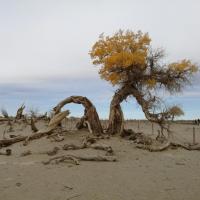 额济纳胡杨林,走入浩瀚无垠的戈壁滩中,突然印入眼帘的是一个童话世界,虽然很孤寂,但可以领略到曾经的繁华;虽然繁华已逝,但仍给我无限的遐想……