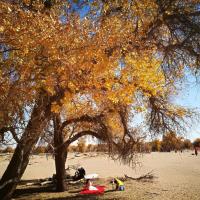 第一次到额济额胡杨林,被这里深秋的景色深深陶醉,大片大片的胡杨林,染成金黄的色彩,阳光下发出金子般的光,仿佛走进了画中,这才是秋的颜色。这个季节是最适合拍照的时候啊!棒棒哒!!