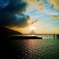 在南澳岛上看日落真的很美那时候在海上的渔船吃饭一边还看着日落,真的好美,南澳岛的沙滩很干净,海岸线也很长