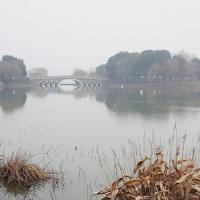 菱湖风景区这是第二次来菱湖公园了,发现和记忆中的有差别,直到出了公园东门看到马路对面也是一片湖区,才意识到曾经入住过的黄梅山庄在西园内,今天游的是东园。东园门口有一个大型剧场以及黄梅戏博物馆。走进公园,只见冬季的菱湖,水面迷蒙,少了夏季满湖