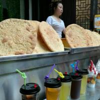 黄龙溪景区是免费的。这个古镇很有意思,大河围绕古镇外围,小溪在古镇中潺潺而过。虽然古镇上也是商业气息太浓密,人也很多,但是一点也不让我们反感,甚至老妈说她喜欢这里胜过锦里。真是有水就有灵气儿啊!如果景区里能有一些大一些的有名气一些的餐厅或甜