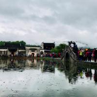 南湖从旅游大巴下车就是从南湖处入园的,不大的湖却给这座徽州古村增添了别样的美,天空下着零零星星的雨,在南湖上泛起层层涟漪,雨后的宏村太美了!