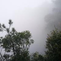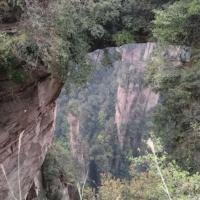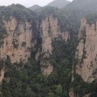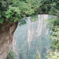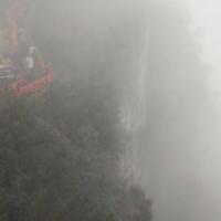 去的时候武陵源天下第一桥在下雨,袁家界全部都在雨云里面,所以看着白茫茫一片。因为大雾,刚到达桥上的时候是不明白有什么特别的,要到侧面去看,才会发现这中震撼。