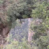 去天下第一桥的时候武陵源在下雨,袁家界全部都在雨云里面,所以看着白茫茫一片。因为大雾,刚到达桥上的时候是不明白有什么特别的,要到侧面去看,才会发现这中震撼。