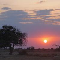 肯尼亚的马赛马拉保护区是肯尼亚最大的自然保护区。这里的景色是典型的非洲稀树草原,每当夕阳西下或旭日东升,彩霞都会映衬在整个天空,加上草原上的孤树,形成了世间少有的美景。虽然肯尼亚的旅游旺季是当地的旱季,但仍然会有阵雨降临,草原上的彩虹也是相
