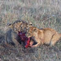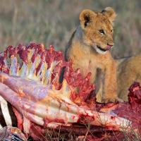 今天的马赛马拉草原直播,一只受伤的母狮终于捕到了猎物,小狮子们虽然还没断奶,但也可以进食肉类了。吃饱了就是玩耍时间,这也是为了今后自己捕猎进行的必要锻炼。狮子吃剩下的肉居然还被黑背胡狼偷走了一块。