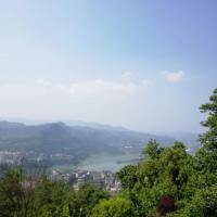 三峡梯城位于云阳城市中心,是随着云阳新县城开发建设而成的,从滨江大道一直到山顶的磐石城,万步登云梯沿山而上,落差达到200余米,而我们偷了个懒,直接包车到山上的广场。云阳的出租车就是各种拼车,不是空车也可以招手上车的。景致不错,当时正值雨后