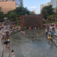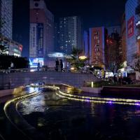 三峡广场沙坪坝比较繁华商圈,店铺林立,做了一些雕塑,增添了一些气氛,还有一条水景,水是流动,很多小孩在嘻戏玩耍,还是值得来看看的。