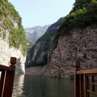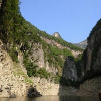 游神女溪记:三峡游游船驶过神女峰,路过神女溪停靠换乘小船进入溪深处,一路过来长江宏伟壮观,这条巫山县的神女溪原本是条小山沟,在三峡上游蓄水后变成了一条支溪,为巫山县开发旅游提供了基础。