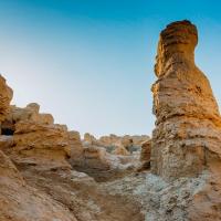 交河故城是一大片生土建筑遗迹,始建于公元前2世纪,整座城市建于高30米的岛状高地上,两侧河谷环绕,是目前全国现存面积最大的,保存最完整的生土建筑遗址。2000多年前的这件巨型雕塑作品如今被岁月风化成各种有趣的造型。游人三三两两的拍照,时而有