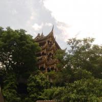 宝轮寺从磁器口古镇往码头方向走,经过路口时会闻到香燭的味道,进寺门票是随意给的。整个寺依山而建,大门到大红雄宝殿要爬一段楼梯,真正的带氧运动。山上空气清新,可以居高临下看到江景,比起下面繁华的古镇,是另一个景象。